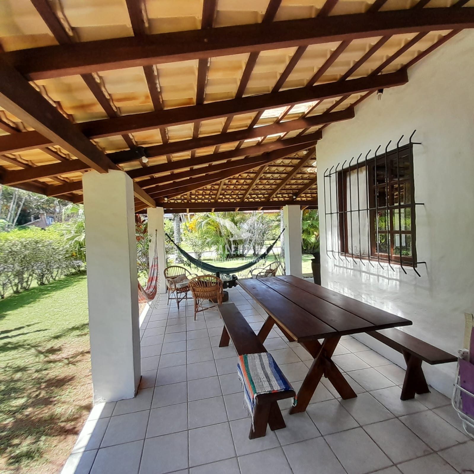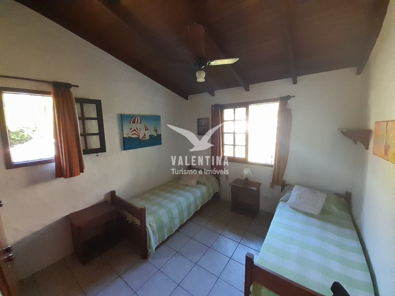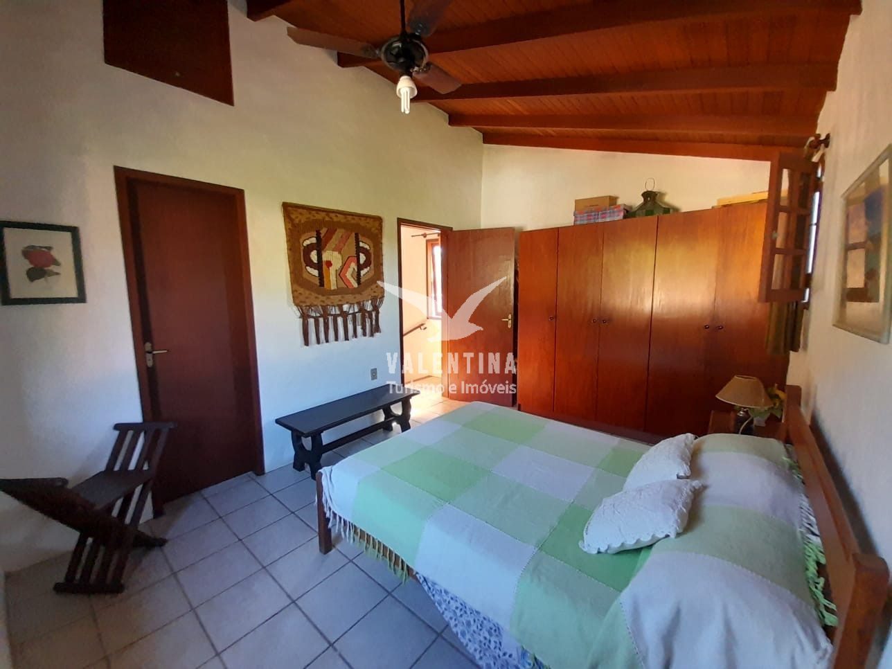Apenas a suíte principal possui ar condicionado, localizada na parte superior, com acesso por escadas.